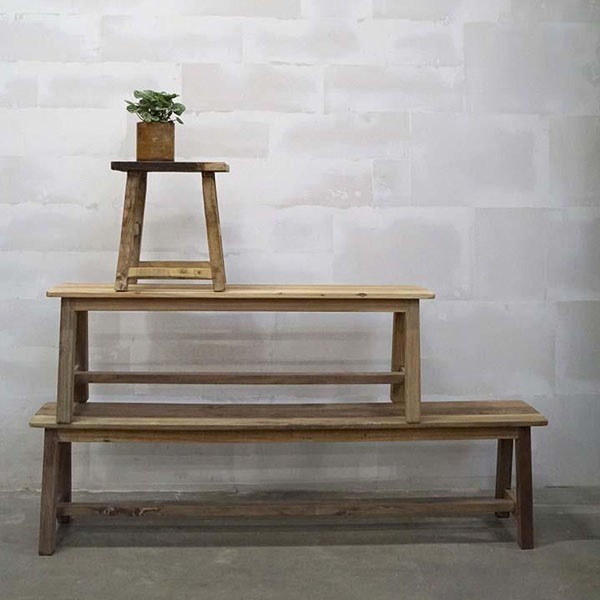 La tabouret Trademark Living est entièrement composé de bois recyclé, ce qui implique que chaque pièce est unique tant au niveau du veinage du bois et de la patine. Son piètement solide et brut ainsi que son assise rectiligne lui donne un coté moderne alors que sa matière lui confère un style presque rustique.